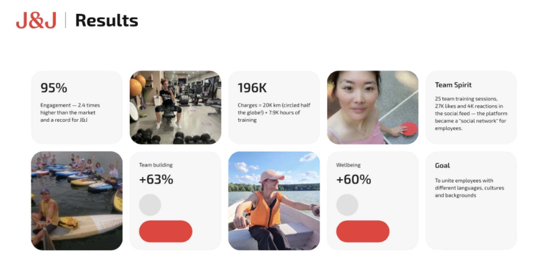 - A través de la gamificación, desafíos personalizados y actividades en equipo, la plataforma aumenta el compromiso de los empleados, recopila datos valiosos y crea incentivos poderosos para la formación y desarrollo de la comunidad.