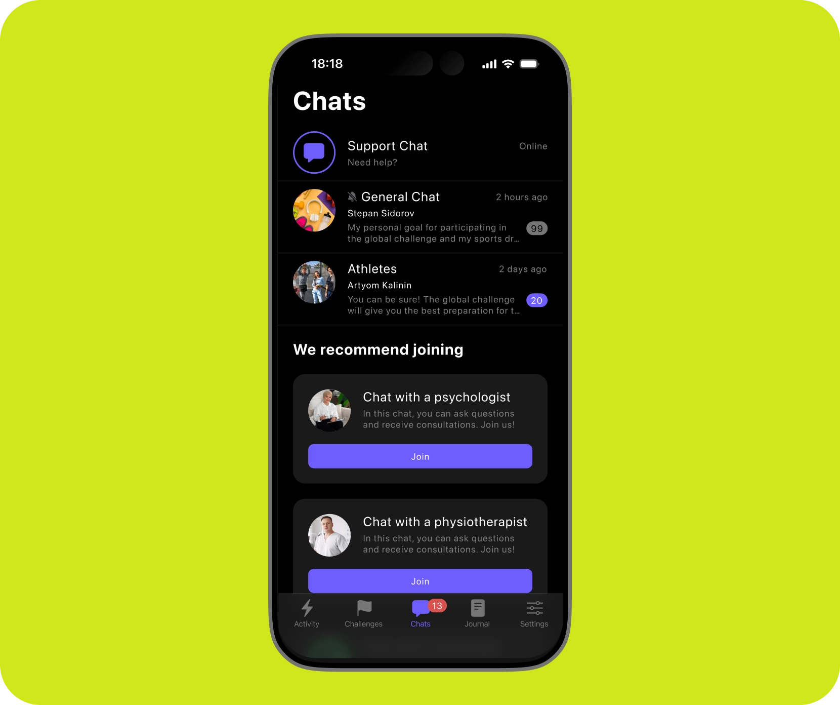 Synchronization via Apple Health and Health Connect for fitness devices: Samsung, Xiaomi, Amazfit, Fitbit. Stayf automatically tracks sports and daily activities, converting them into charges. Various sports are available—from running and yoga to rowing and strength training. Honest results thanks to built-in moderation.