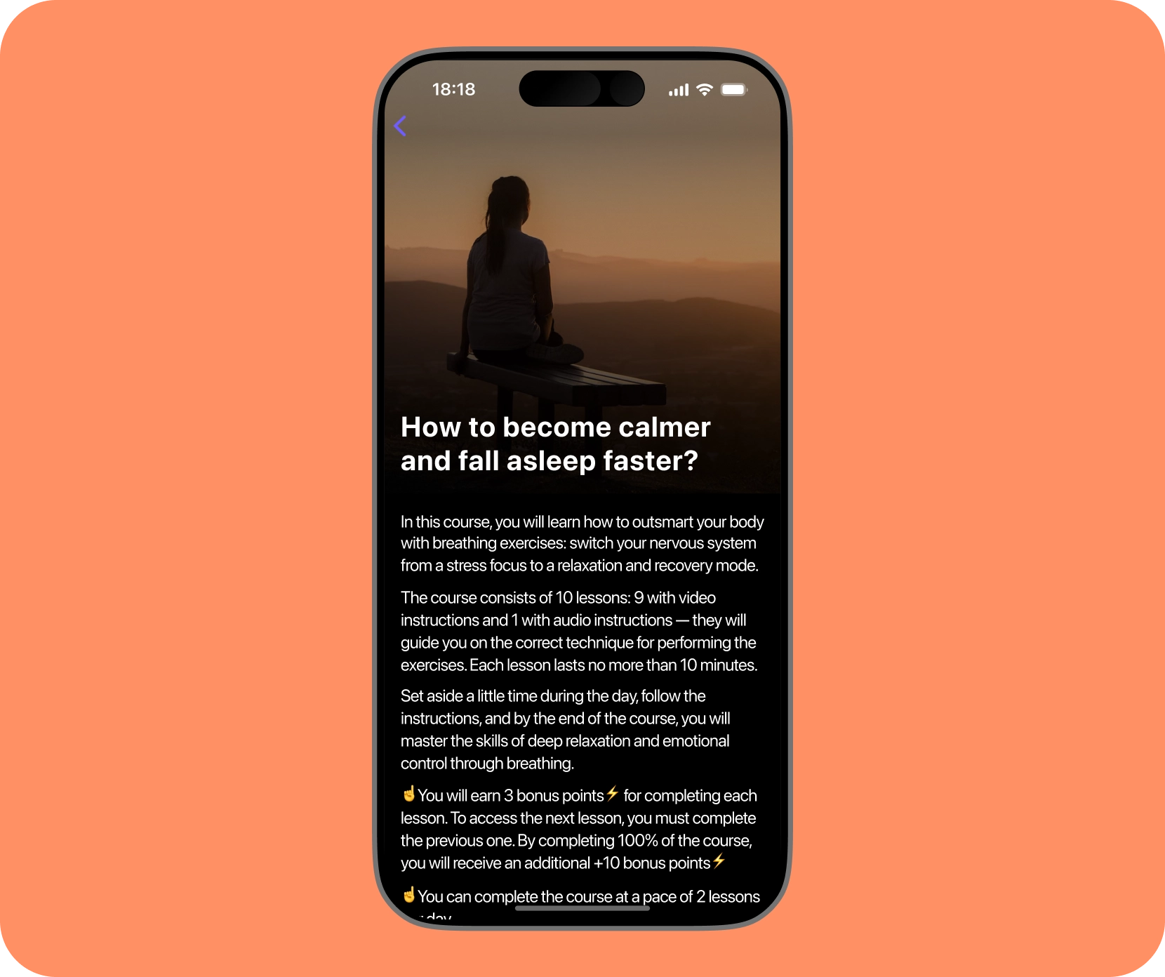 Courses, quizzes, and useful tips from experts: Physical activity, Nutrition, Mindfulness and mental health, Everyday health, Workplace health, Financial stability.