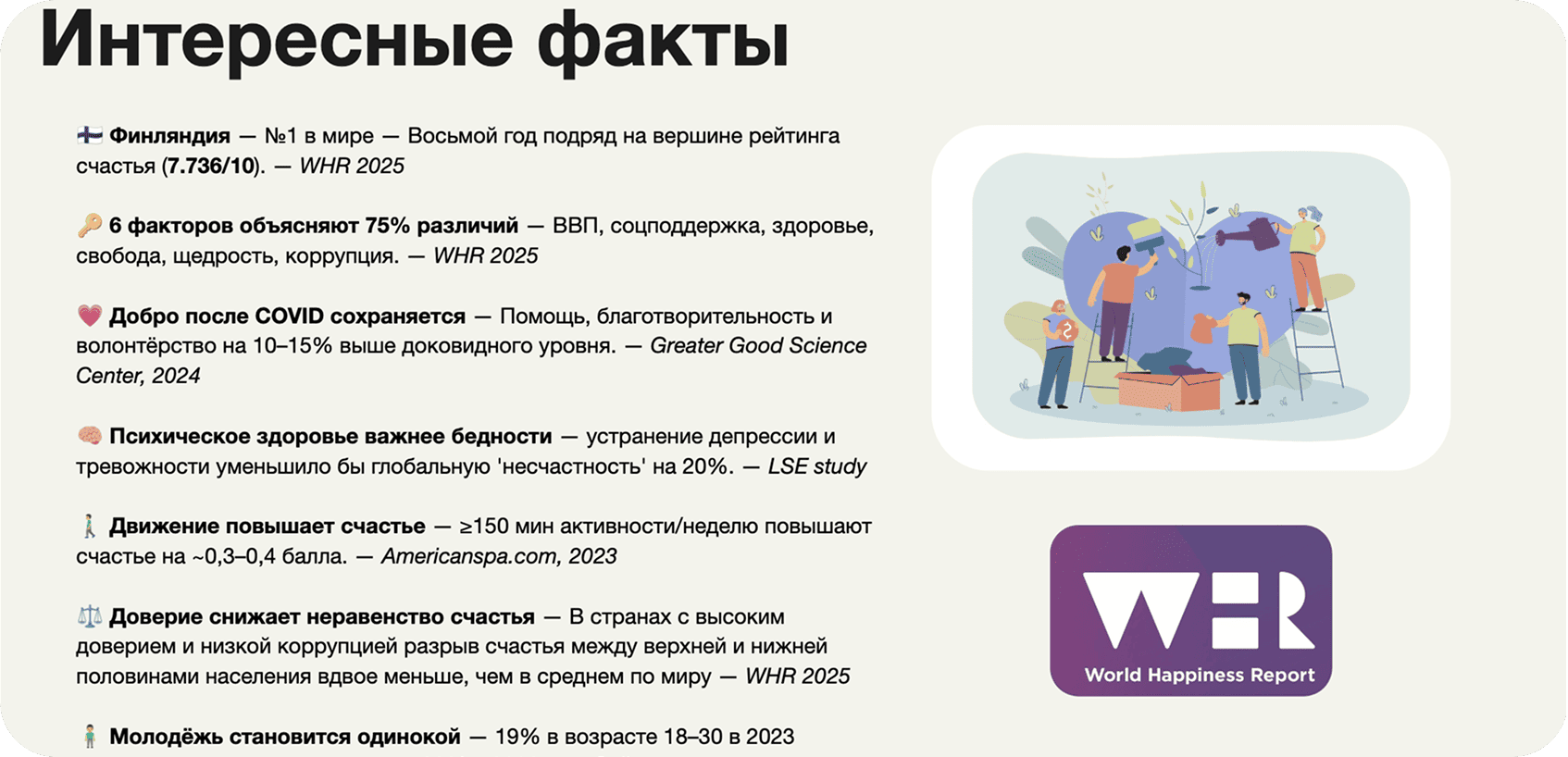 Quando falamos sobre felicidade, é importante entender: não é uma coincidência ou um "acontecimento feliz." Pesquisas mostram que o nível de satisfação com a vida é determinado por um conjunto de fatores específicos.