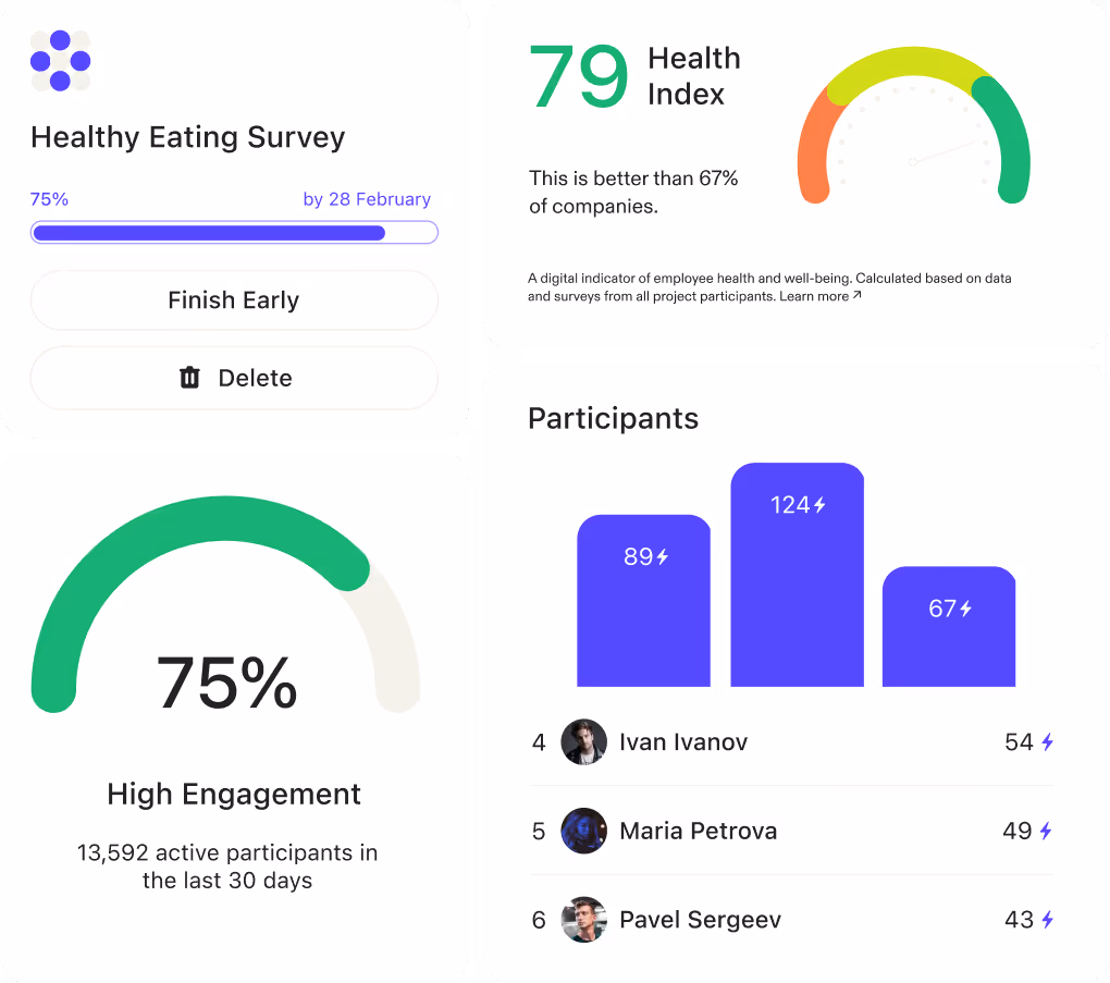 Stayf enables HR leaders to focus on strategic tasks while ensuring employee health, engagement, and motivation. Flexible branding customization and unique design make the platform a natural extension of your corporate culture.